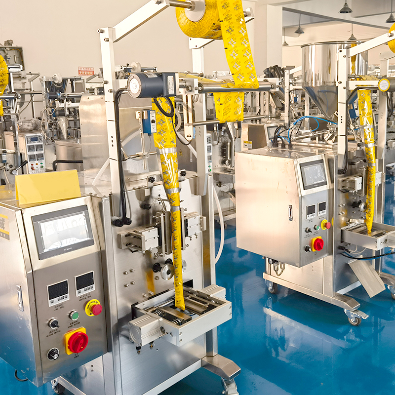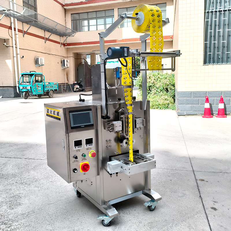 小立式液體包裝機(jī)的工作過程高速、便捷、智能,它主要是由供料、定量、制袋、充填、封口、切斷、打印、計(jì)數(shù)等多個(gè)環(huán)節(jié)的緊密協(xié)作,使其包裝效果得到極佳的生產(chǎn)狀態(tài)。自動(dòng)化包裝機(jī)在經(jīng)過工作人員的調(diào)試后,液體物料開始從儲(chǔ)料罐內(nèi)通過輸送管道進(jìn)入定量系統(tǒng),卷筒包材也在同一時(shí)間通過導(dǎo)輥組和張緊裝置,由光電檢測(cè)控制裝置對(duì)商標(biāo)圖案位置進(jìn)行檢測(cè)后,通過成型器卷成圓筒狀裹包在充填管表面,小立式液體包裝機(jī)根據(jù)預(yù)設(shè)的包裝參數(shù),開始對(duì)物料進(jìn)行定量,并通過充填機(jī)構(gòu)快速灌入在包裝袋內(nèi),充填工作結(jié)束后,包裝袋的開口部分經(jīng)過熱封加熱技術(shù),確保商品的密封性,在封口完成后,包裝袋通過切斷裝置快速形成獨(dú)立的產(chǎn)品,自動(dòng)化包裝機(jī)將會(huì)對(duì)成品進(jìn)行送出,完成一系列包裝工序。