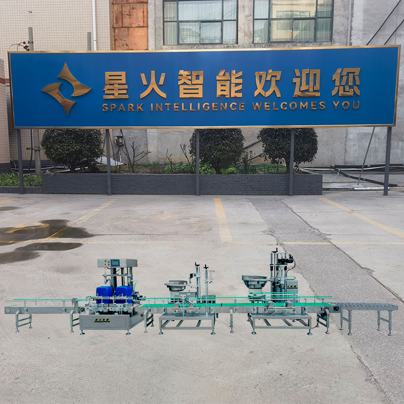 全自動液體稱重灌裝機在化工、醫(yī)藥、食品、農(nóng)業(yè)、建筑、化妝品等行業(yè)當中,大桶物料的灌裝工作對灌裝精度和生產(chǎn)效率無法做到兼?zhèn)涞臓顟B(tài)。全自動稱重灌裝機作為當下星火智能設備的前沿機械設備,它融合了高精密機械稱重感應技術和電子傳感控制的多重保護,能夠對5-30公斤的液體、膏體物料提供高精度的灌裝工作。雙頭定量灌裝旋蓋生產(chǎn)線以整套自動化機械設備的聯(lián)動操控,保障了大桶物料的高難度生產(chǎn)模式。