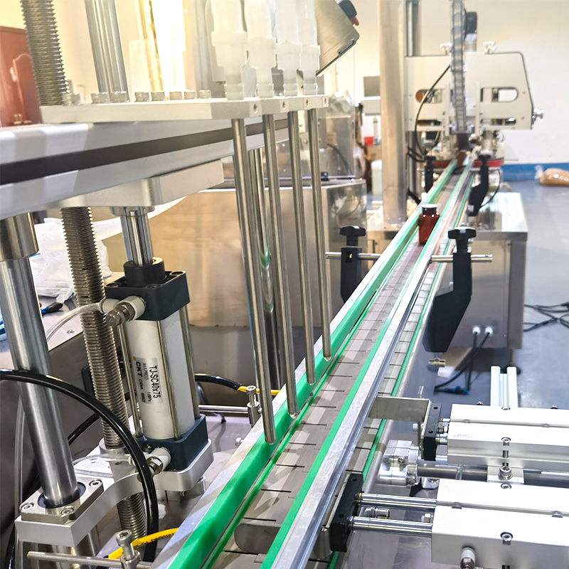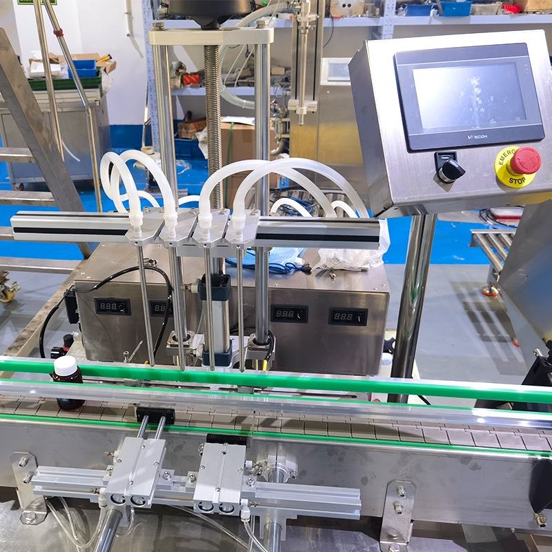 小型液體灌裝機械采用精密齒輪泵進行對液體的抽取與灌裝,能夠實現(xiàn)非常高的計量精度,工作人員通過在電腦顯示器進行設定好灌裝參數(shù)以及規(guī)格,全自動四頭齒輪泵灌裝機的高精度傳感器,開始針對料箱內(nèi)的液體進行抽出、輸送、充填運動,四個灌裝頭同步工作,提高了灌裝效率的同時,保證了每瓶容器內(nèi)的液體物料的一致性輸出,在小型液體灌裝機械進入自動化投產(chǎn)階段后,電機驅動齒輪泵的主動齒輪旋轉,帶動從動齒輪同步轉動,從而將液體從進料口吸入,并通過精確的齒輪間隙將其定量地輸送到出料口,實現(xiàn)灌裝操作。
