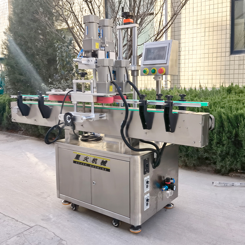 灌裝工作的收尾總是以理蓋、上蓋、旋蓋作為成品結(jié)束工序的一項。全自動夾蓋旋蓋機(jī)是星火智能設(shè)備新開發(fā)的一款多功能機(jī)械設(shè)備,多功能理蓋旋蓋機(jī)通過精心的設(shè)計結(jié)構(gòu),為玻璃瓶、塑料瓶、方形瓶、異形瓶等容器提供了良好的旋蓋效果。全自動夾蓋旋蓋機(jī)實(shí)現(xiàn)了從理蓋、上蓋、旋蓋全流程的自動化操作,操作過程無需人工干預(yù),提高生產(chǎn)率。