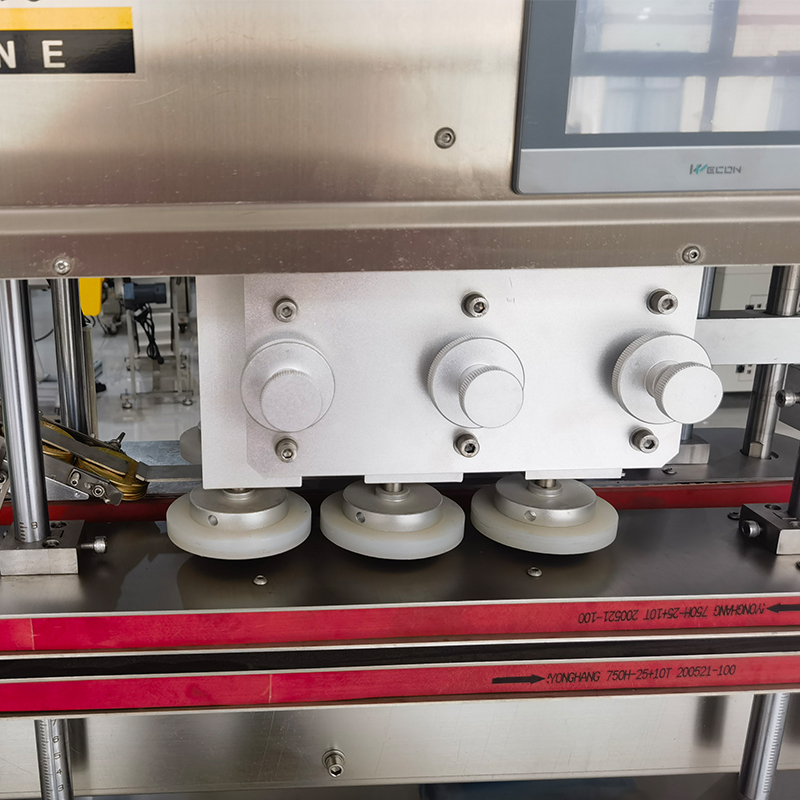 4、適應(yīng)范圍廣:可處理理塑料HDPE/PET、金屬鋁蓋、玻璃等瓶體的多種容器的旋蓋。對(duì)于復(fù)雜的工況應(yīng)對(duì)輕松自如,尤其是灌裝后瓶?jī)?nèi)負(fù)壓,自動(dòng)化上蓋旋蓋機(jī)自動(dòng)啟動(dòng)預(yù)松蓋排氣程序,避免旋蓋后瓶體塌陷。