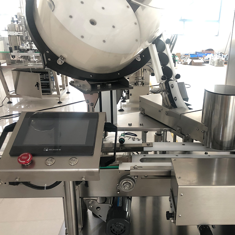 南京全自動(dòng)真空旋蓋機(jī)在飲料、制藥、化妝品、洗護(hù)用品等諸多行業(yè)行業(yè)極高的使用率,它的工作方式快速、精準(zhǔn)、延長商品保值期限。作為一款高智能的機(jī)械設(shè)備,工作人員提前在7寸彩色大顯示屏幕上進(jìn)行設(shè)定好上蓋速度、旋鈕力度、每個(gè)容器的間距等信息。玻璃瓶旋蓋設(shè)備在啟動(dòng)后,容器會(huì)通過輸送帶進(jìn)入旋蓋工位,輸送帶的間距和速度經(jīng)過精確調(diào)整優(yōu)化的數(shù)據(jù),可以保證瓶子精準(zhǔn)平穩(wěn)有序的送達(dá),瓶蓋則通過振動(dòng)盤運(yùn)送至掛蓋處,隨后被精準(zhǔn)地放置在瓶口上,進(jìn)入旋蓋區(qū)域后的容器在上蓋后真空泵開始工作,將瓶內(nèi)的空氣抽出,形成真空環(huán)境,全自動(dòng)真空旋蓋機(jī)啟動(dòng),通過旋轉(zhuǎn)力將瓶蓋旋緊至預(yù)定扭矩,完成旋蓋工作后的成品杯輸送帶送出。