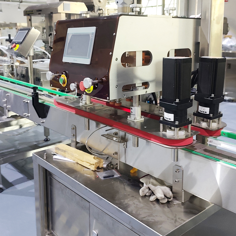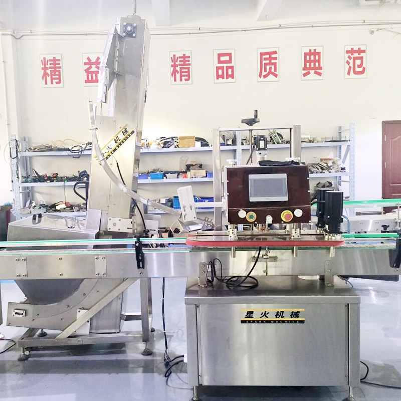 2.光電感應(yīng),感應(yīng)到瓶子位置后,自動(dòng)定位容器,完成旋蓋后再自動(dòng)輸送到下一個(gè)工序。